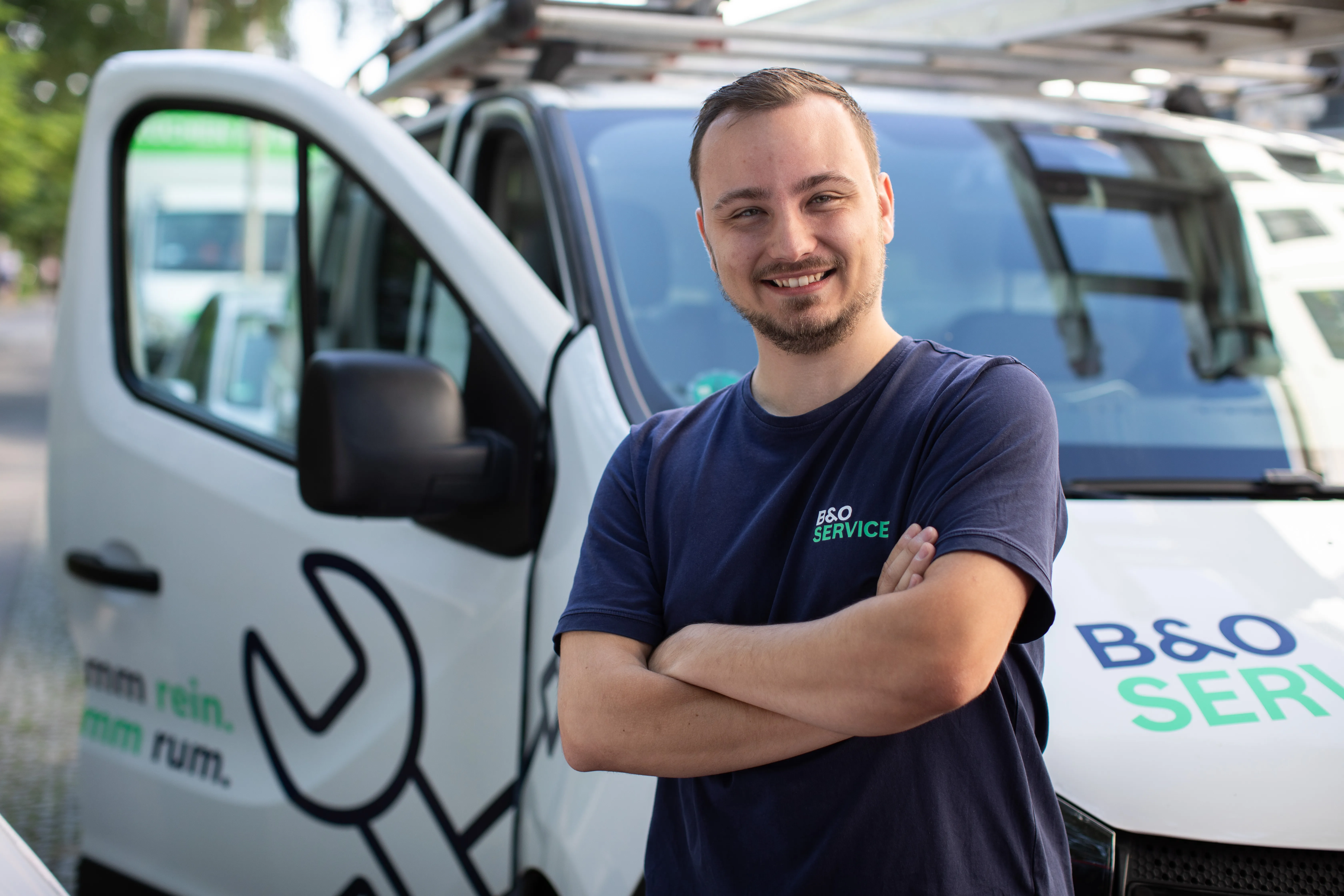 Unsere Mitarbeitenden erhalten je nach Job-Familie Smartphone, Laptop und Tablet. Für unsere Handwerkenden gibt es zusätzlich hochwertiges Werkzeug, ein vollausgestattetes Servicefahrzeug mit Tankkarte und Markenkleidung.